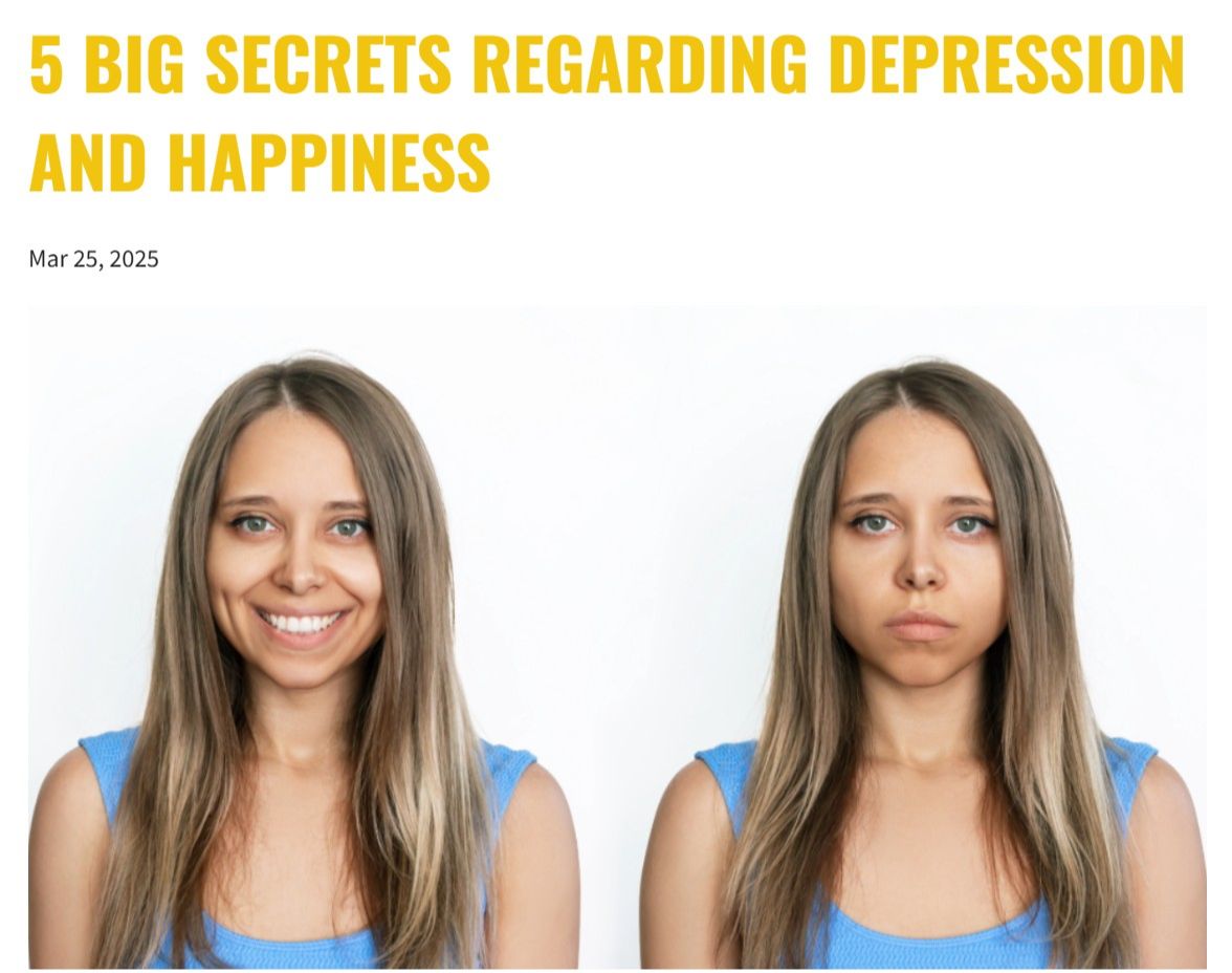 While Researching, I Discovered 5 Big Secrets For Becoming Happier - as I was reviewing some of Dr. Robert Lustig's work on happiness, I was thrilled to discover 5 big secrets for being happy and lifting depression. I wrote them down quickly, in this short article. Click here to see these 5 secrets for becoming happier.