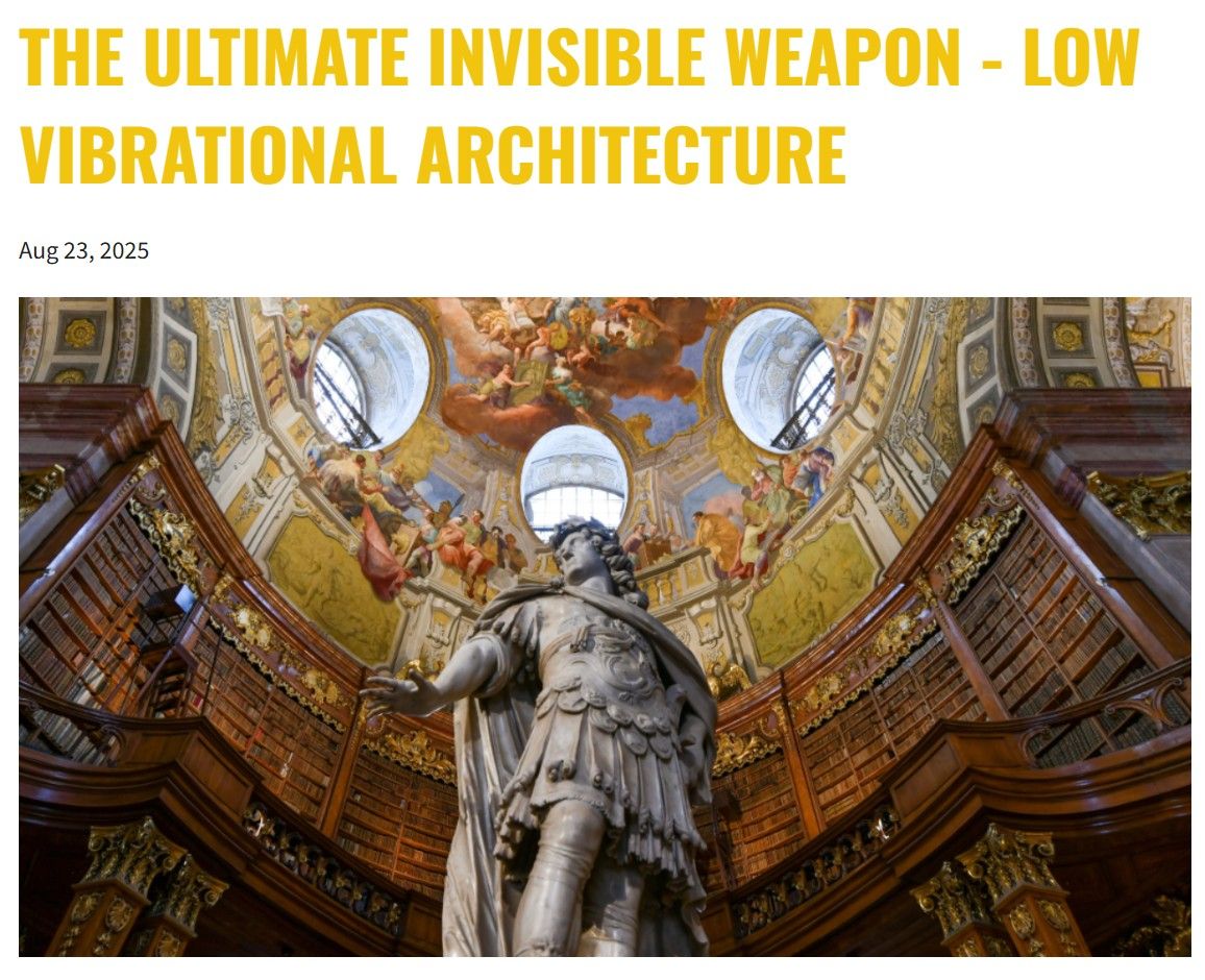 Low Vibration Architecture (Ugliness) is Being Used as the Ultimate Disempowering Energy Weapon Against the Public - we're ina frequency war, a spiritual war and a wireless war. Click here to understand how ugliness and low frequency architecture are being weaponized against you, your family and your community.
