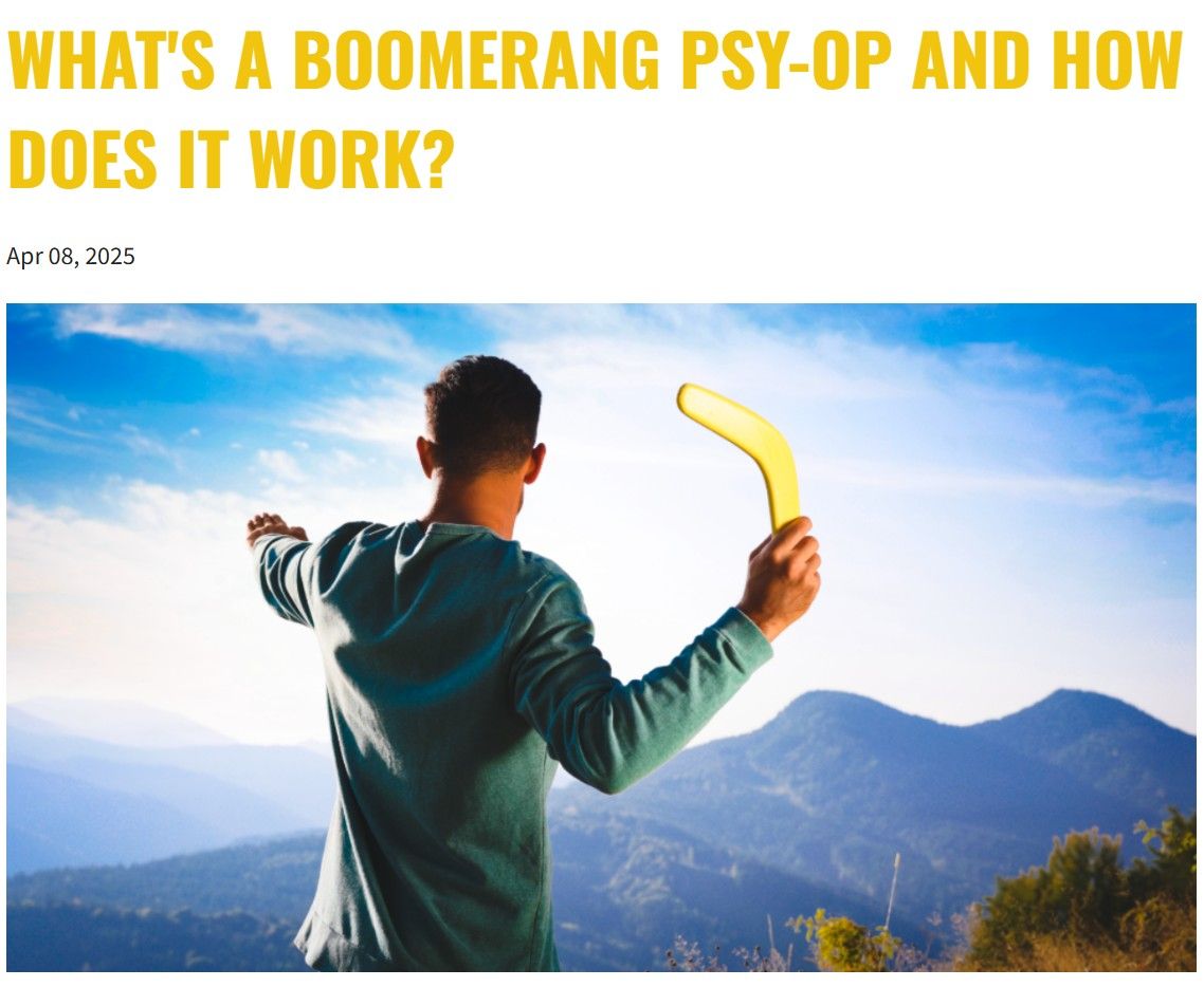 What Is A Boomerang Psy-Op and How Does It Work? - in this brand-new article, I actually have a real life video recording of a boomerang psy-op in action, so you can more easily understand that you're actually living through a real life boomerang psy-op right now. Click here to read and watch.
