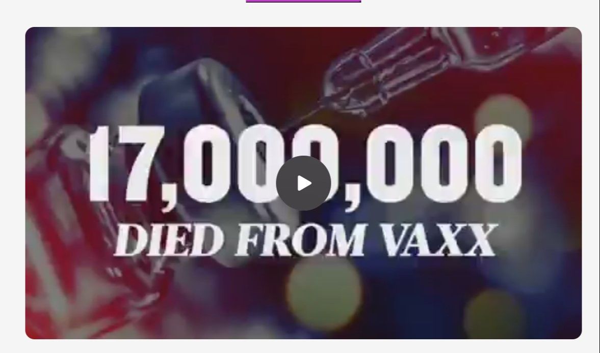 Government Data Proves There Was No Viral Threat or Pandemic - No Extra Deaths Existed Until The Shots Rolled Out -click here to see that government data. The weapon in this war, against the public, was the TV and all other media. We are told that "adverse vaccine events" are 1 in a million. 1 out of every 20 elderly died from the COVID shot. 1 out of 800 (in all other age categories) died from the COVID injection. Warn the others.